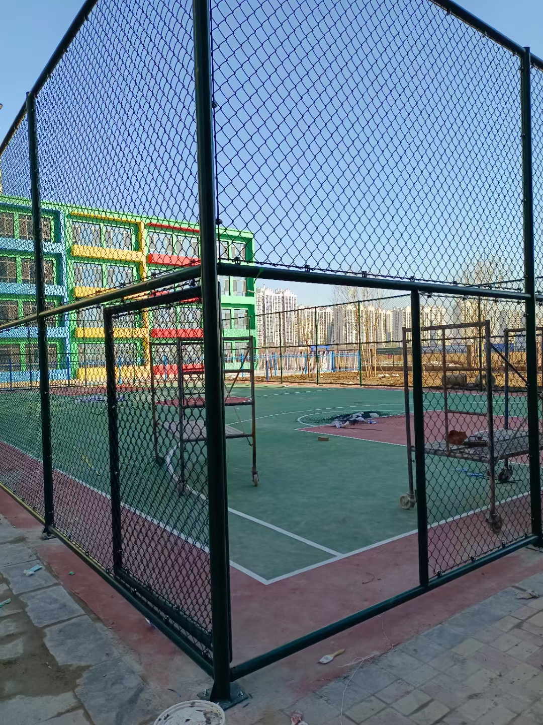 球場圍欄網(wǎng)在施工安裝的時(shí)候,要預(yù)留出球場圍欄網(wǎng)的出入門。球場圍欄網(wǎng)安裝是比較方便的,只是球場圍欄網(wǎng)出入門安裝要多注意一些。在安裝到球場圍欄網(wǎng)出入門的時(shí)候要把出入門的位置預(yù)留出來。當(dāng)把球場圍欄網(wǎng)主體安裝好后,要根據(jù)預(yù)留的位置再進(jìn)行出入門的安裝。因?yàn)槌鋈腴T要在門扇的周圍預(yù)留出門框的安裝。門框要根據(jù)現(xiàn)場實(shí)際情況進(jìn)行安裝施工。門框的尺寸用料要大一些,方便進(jìn)行現(xiàn)場裁斷。如不明白請聯(lián)系球場圍欄網(wǎng)生產(chǎn)廠家和看下圖。